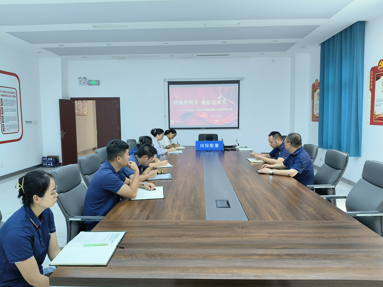 為深入貫徹落實中央八項規(guī)定精神,筑牢黨員干部職工廉潔自律思想防線,9月26日上午,川投船重黨支部組織公司全體在崗員工,開展國慶、中秋節(jié)前廉潔警示教育。