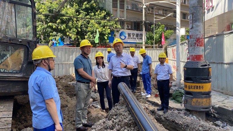 在解放中街老舊管網(wǎng)整改現(xiàn)場(chǎng),楊志剛認(rèn)真查看了老舊管網(wǎng)現(xiàn)場(chǎng)整改情況,了解了施工進(jìn)度和改造工藝。