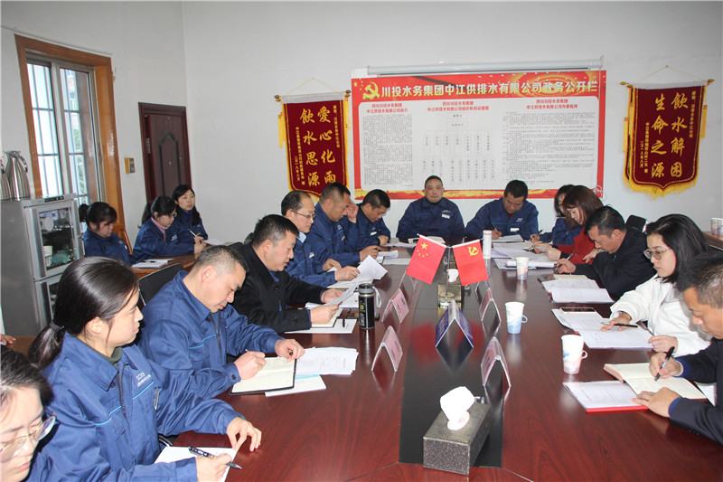 按照川投水務(wù)集團(tuán)綜合考評(píng)總體部署和要求,1月25日,川投水務(wù)集團(tuán)黨委副書(shū)記、工會(huì)主席王小元率考評(píng)組一行對(duì)中江水司進(jìn)行了2018年度綜合考評(píng)。