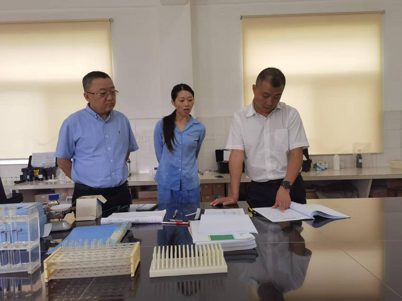 檢查組一行先后前往水廠泵房、鹽酸儲存區(qū)、配電室、沉淀池、化驗室等場所,進行了全面、細致的實地檢查。重點查看了生產設施設備運行是否正常、消防器材是否完備有效、用電用氣是否規(guī)范、環(huán)保措施是否落實到位、應急疏散通道是否暢通、出廠水質是否合格等情況。同時,檢查組還詳細查看了各部門節(jié)日期間的值班安排、應急物資儲備情況。